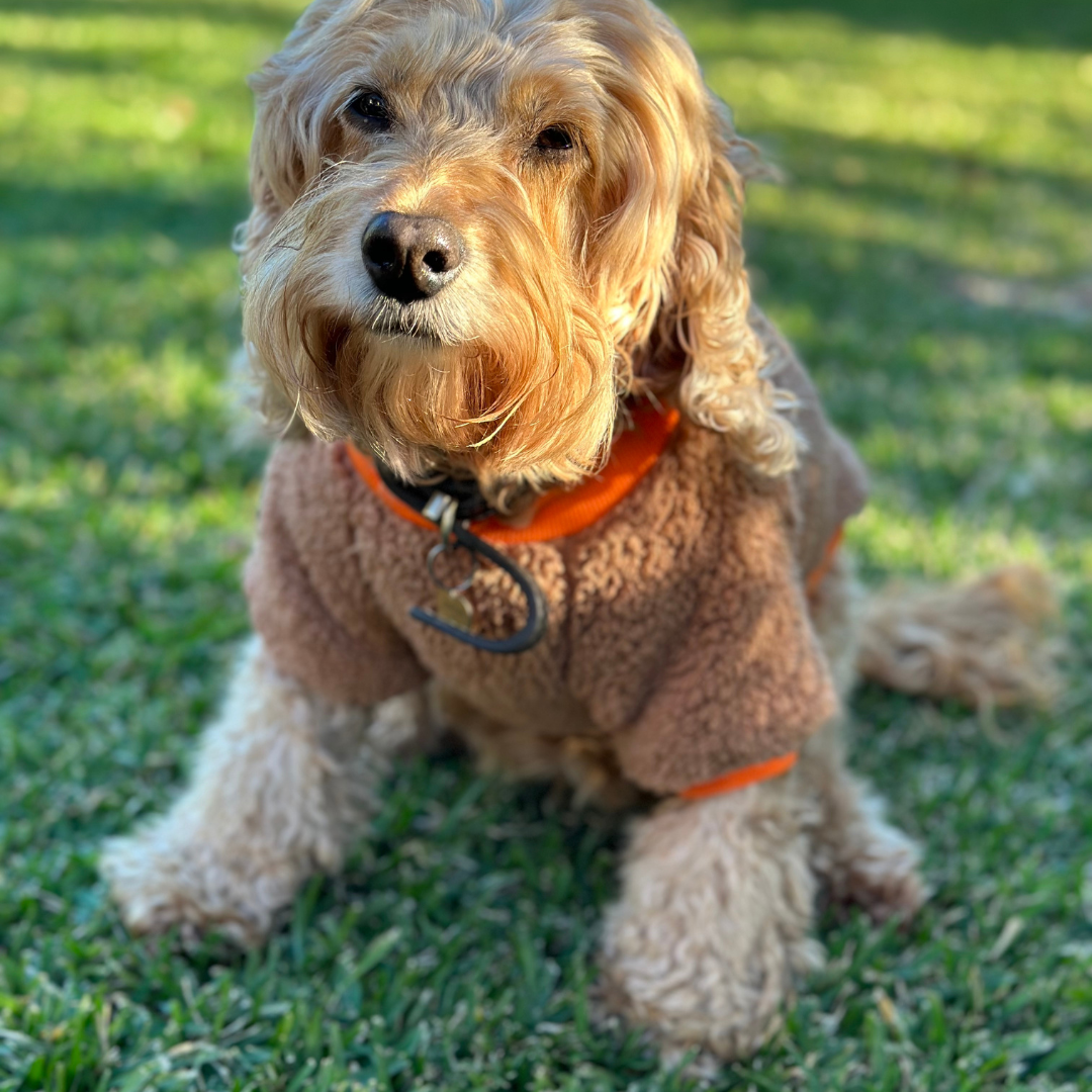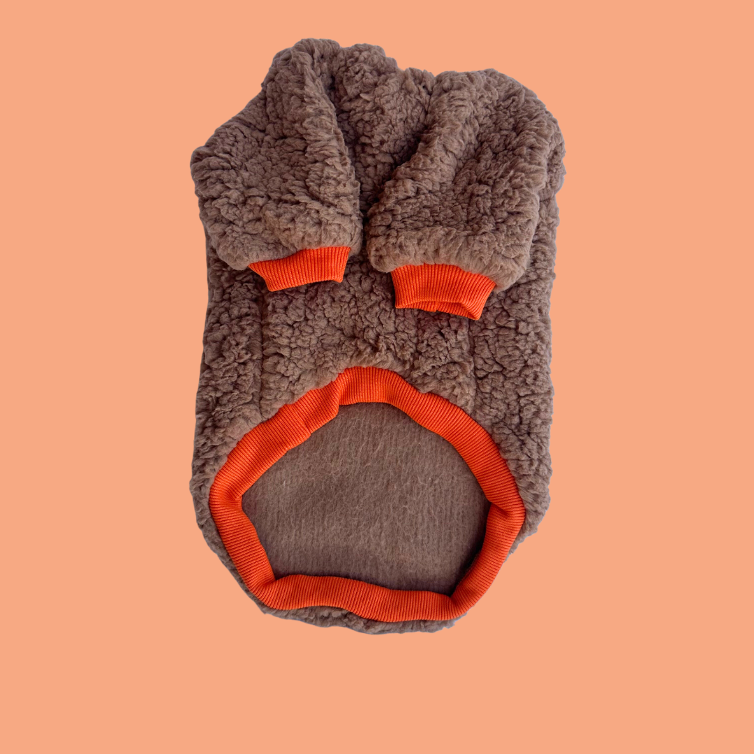 The cutest of cute. Our Honey Fluffy Sweater with orange trim.